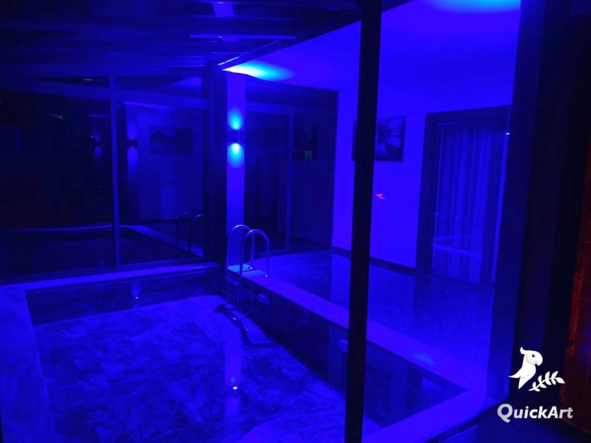 In the private garden, there is a heated private swimming pool sized 4 x 8 meters with a depth of 1.40 meters. Pool and garden maintenance is done once a day in the morning or evening. There are 4 sun loungers and 1 swing by the pool.
