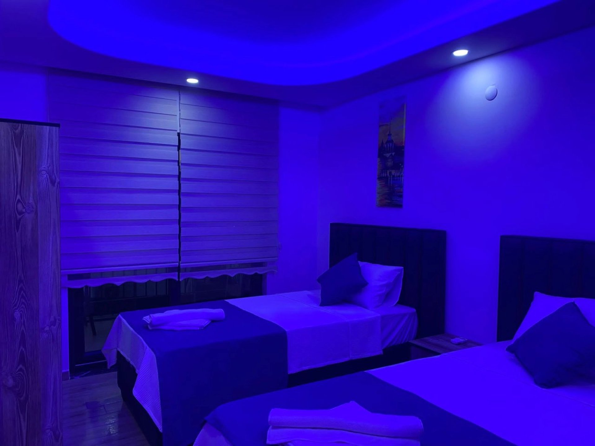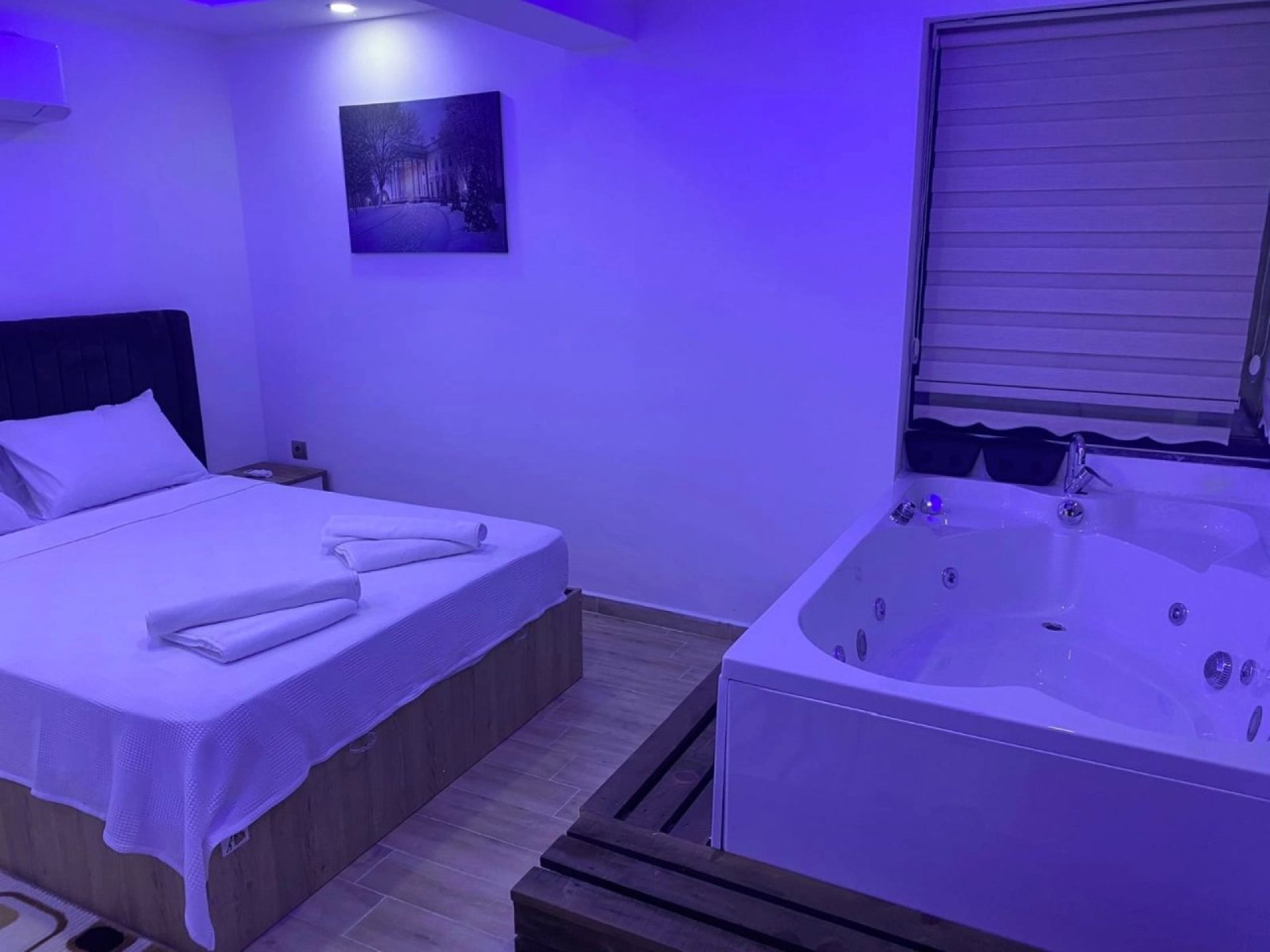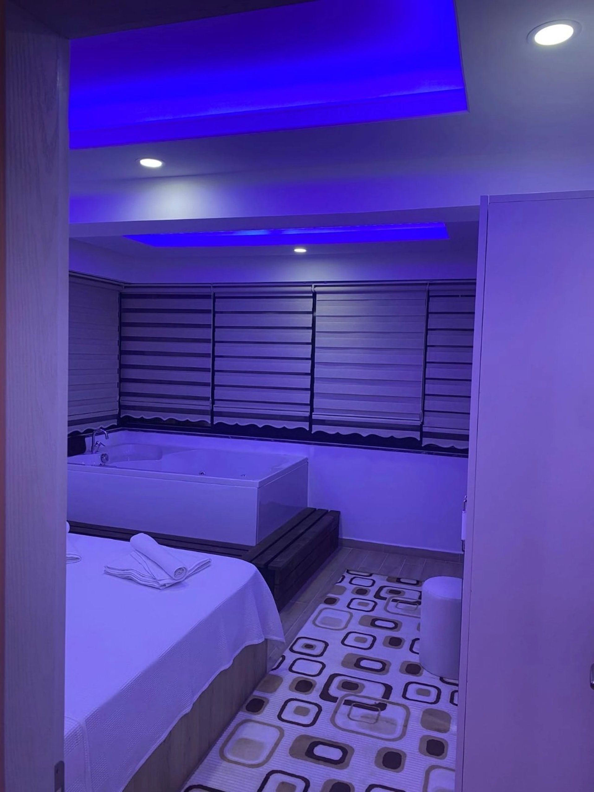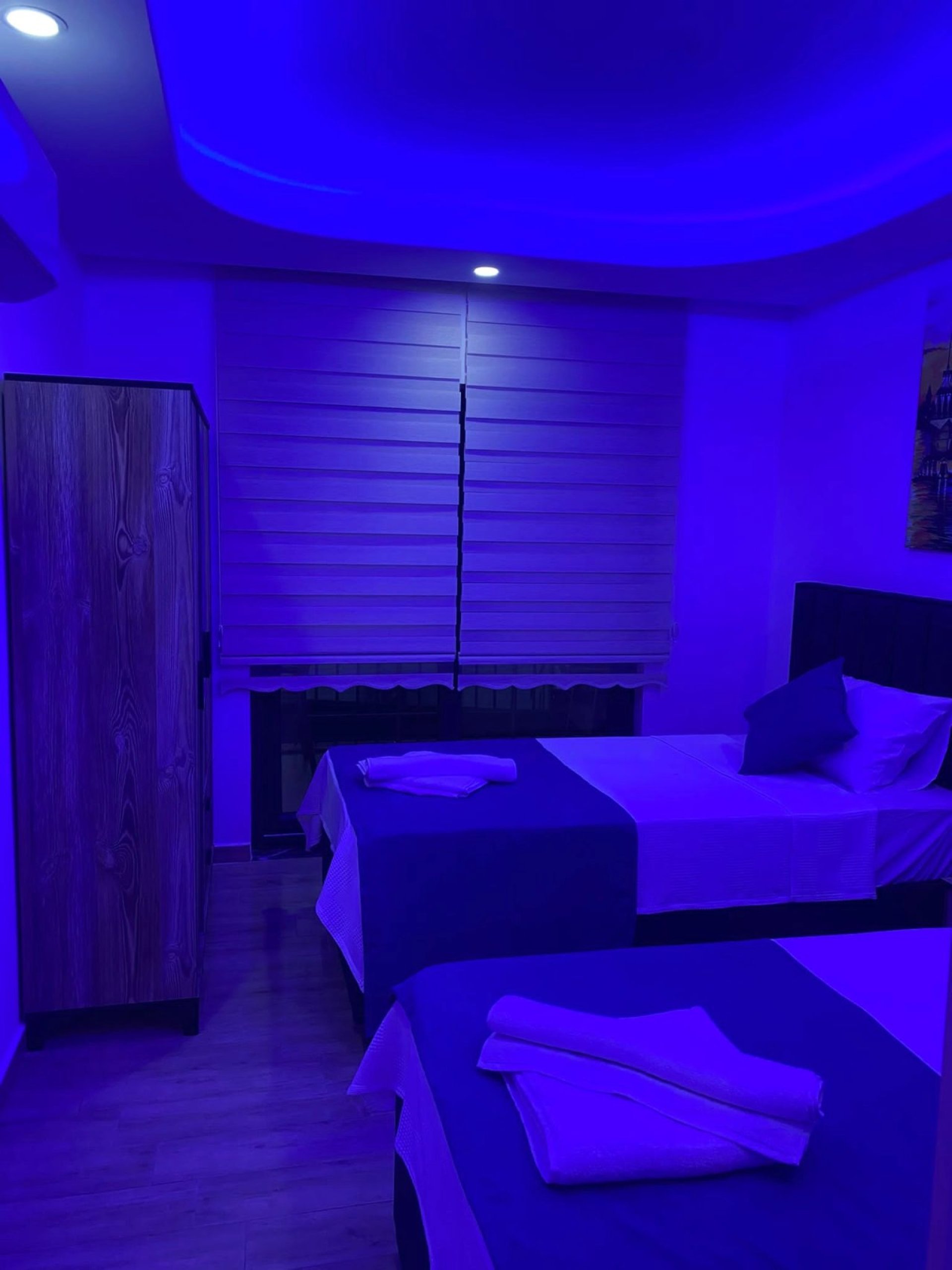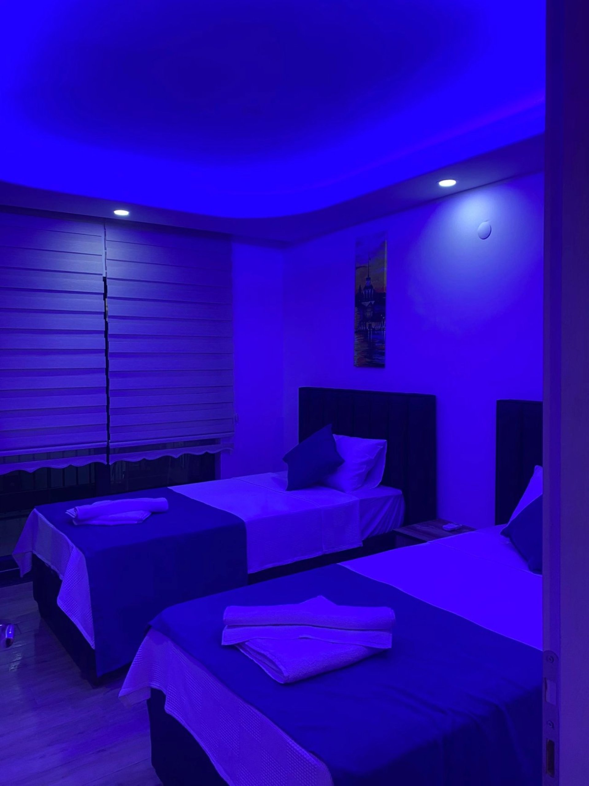 Bedroom 4: 2 single beds, bedside table, air conditioning, jacuzzi, side room, large shared terrace